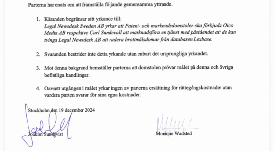 • Hösten 2024 stämde Lexbase oss på grund av en formulering om dem på vår webbplats.