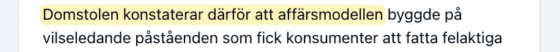 • Trots detta påstår Lexbase i en text från oktober 2025 att domen kom nu och att den fastslår att det gällde flera påståenden, att konsumenter blivit lurade och att vi har en ”vilseledande affärsmodell”. Inget av detta är sant.